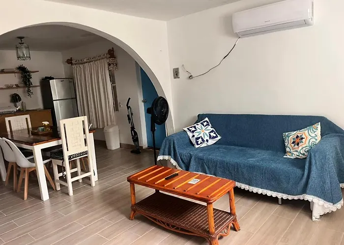 O Mar Caribe Apartamento dispõe de cozinha totalmente equipada onde os hóspedes podem preparar as suas próprias refeições. O aeroporto Isla Mujeres, Quintana Roo está a uma distância de 15 km do o apartamento de 65 m².